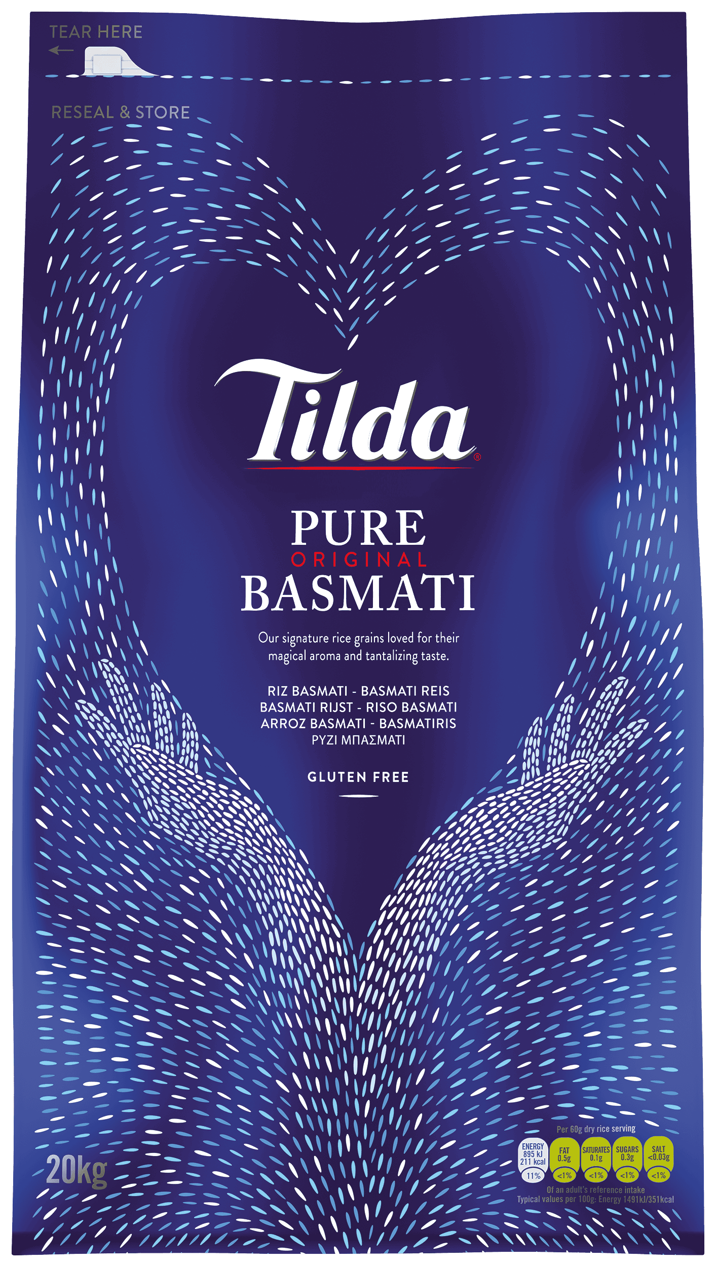 Ce grain unique est connu pour son parfum alléchant, son arôme magique et sa délicate texture moelleuse. Tout comme le champagne, le riz basmati pur ne peut être cultivé et récolté que dans un seul endroit au monde : sur les contreforts de l'Himalaya. Nous testons la pureté de nos grains afin de respecter les caractéristiques uniques du riz basmati pur.