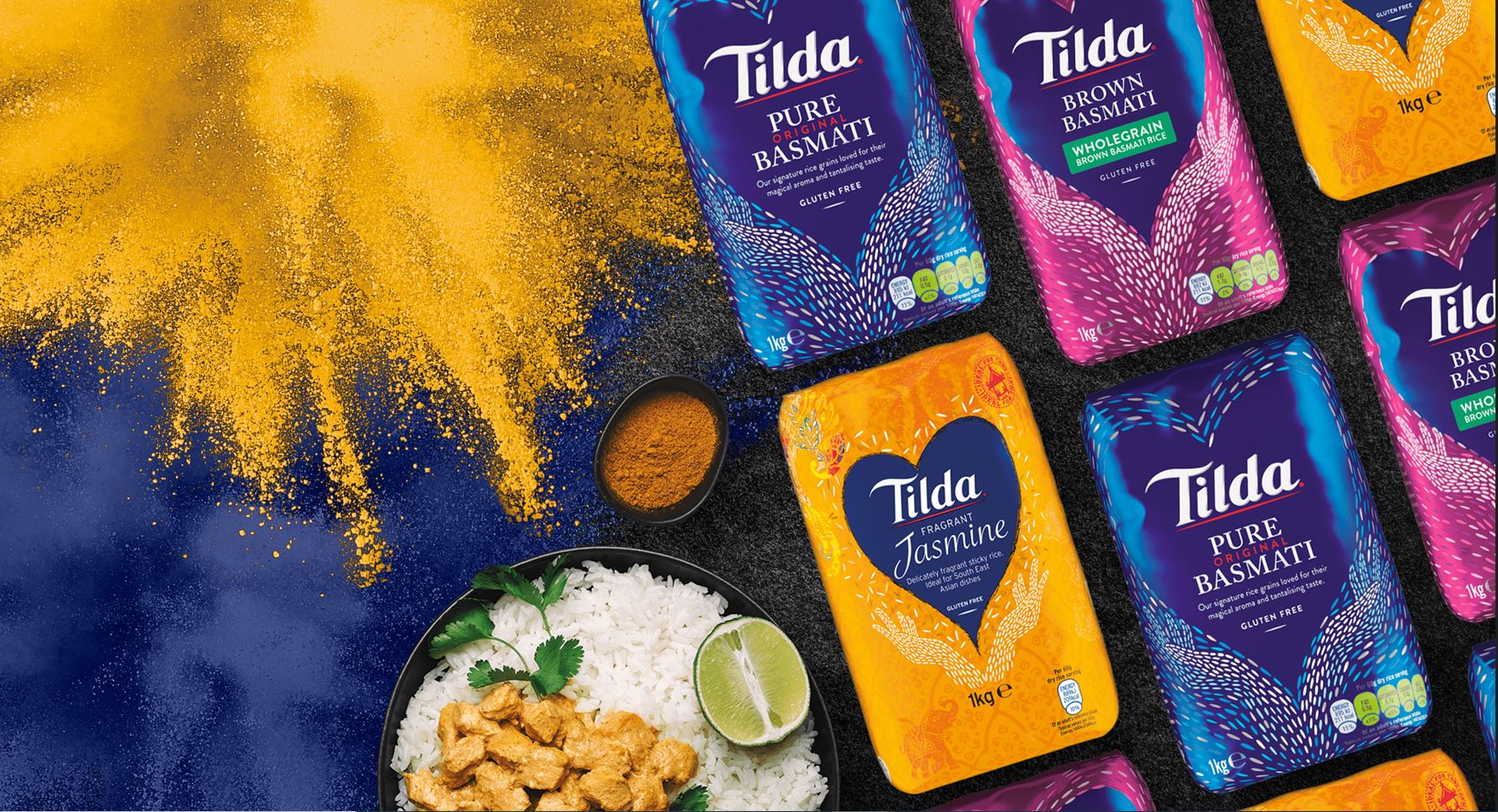 Of je nu een snelle curry op tafel wilt zetten of zin hebt in een eenvoudige rijstsalade: we doen geen enkel compromis aan de zuiverheid, smaak, kwaliteit of voedingswaarde van onze rijst. Daarom weet je dat je goed zit bij Tilda. We horen regelmatig van onze klanten dat ze zijn opgegroeid met Tilda. En hoewel we vooral bekend zijn om onze basmati, zijn we gedurende onze reis die nu al 50 jaar duurt ook uitgegroeid tot experts in andere graansoorten. We zoeken altijd naar de beste manier om je producten van de allerbeste kwaliteit te bieden en maken je graag wegwijs in de wereld van rijst en eten.