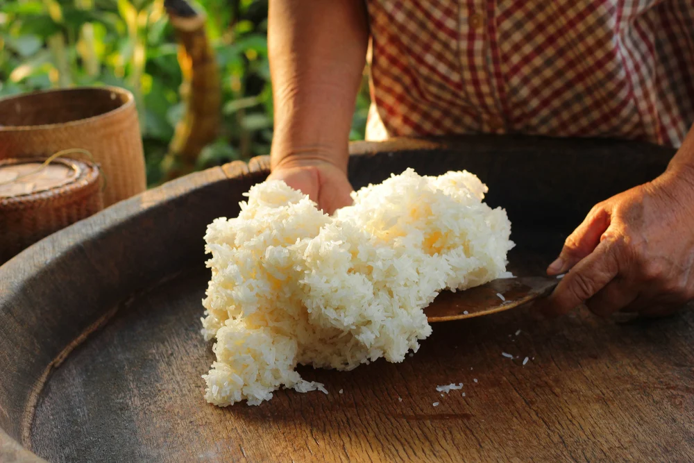 Sticky rice is dus de perfecte rijst om met stokjes te eten. Of, zoals in Laos, met je handen. Het land tussen Vietnam, Cambodja en Thailand is sowieso al het “sticky rice-land” bij uitstek. Inwoners eten er per jaar zo’n 171 kg sticky rice per persoon!