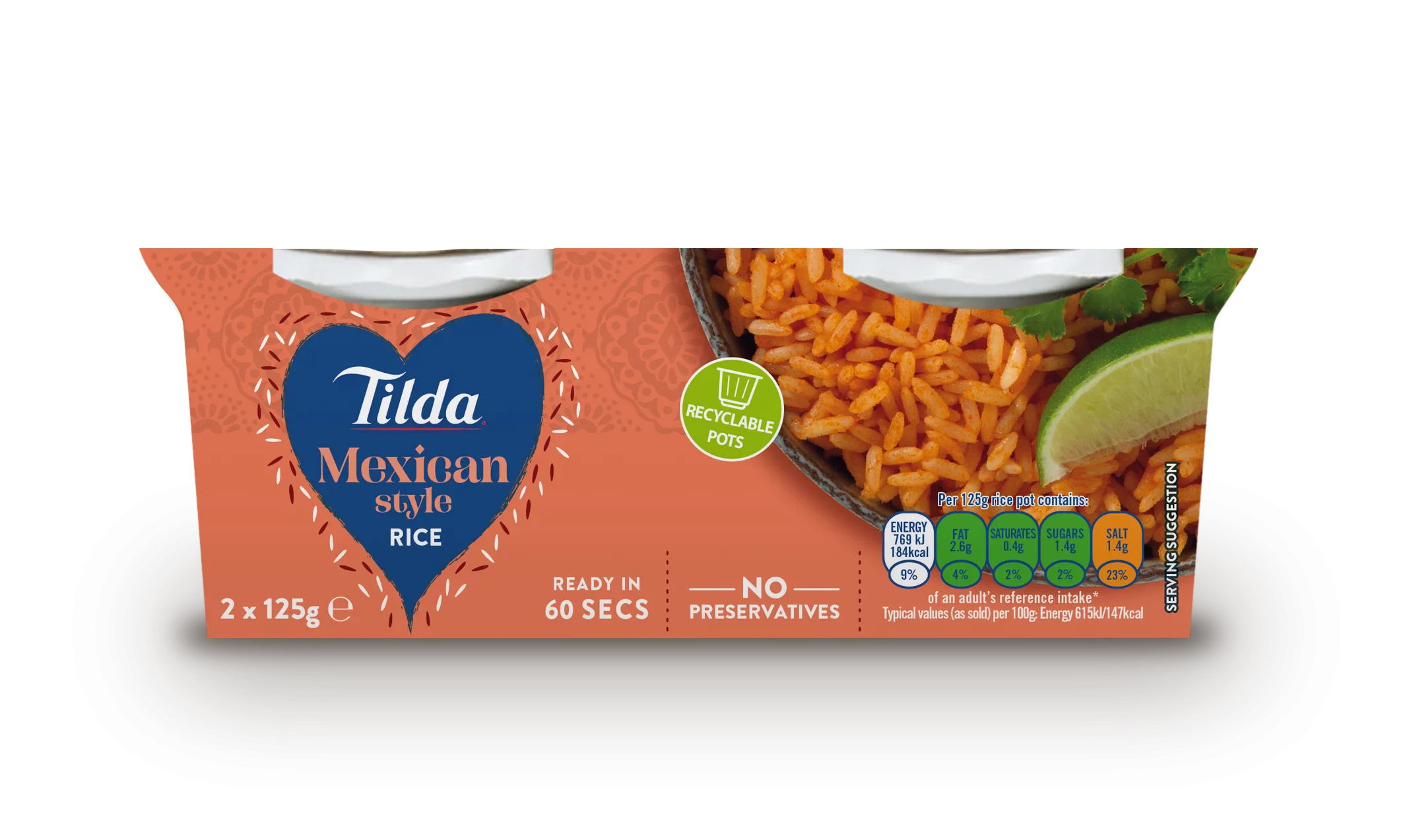 Tilda Mexican Style Long Grain Rice Pots 2 x 125g